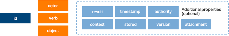 xAPI는 “Actor(누가) Verb(무엇을 했는지) Object(무엇에 대해)”라는 3요소를 기반으로 데이터를 기록함