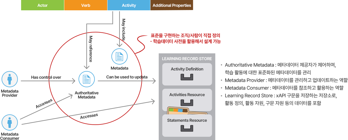 특히 xAPI는 학습자가 어떤 환경에서 어떤 학습 활동을 수행했는지를 상세히 기록하며, 다양한 학습 활동 데이터를 시간, 장소, 맥락과 함께 체계적으로 저장할 수 있으며, SCORM(Sharable Content Object Reference Model)에서 제한된 데이터 수집 범위를 확장하여 다양한 학습 활동을 추적할 수 있음